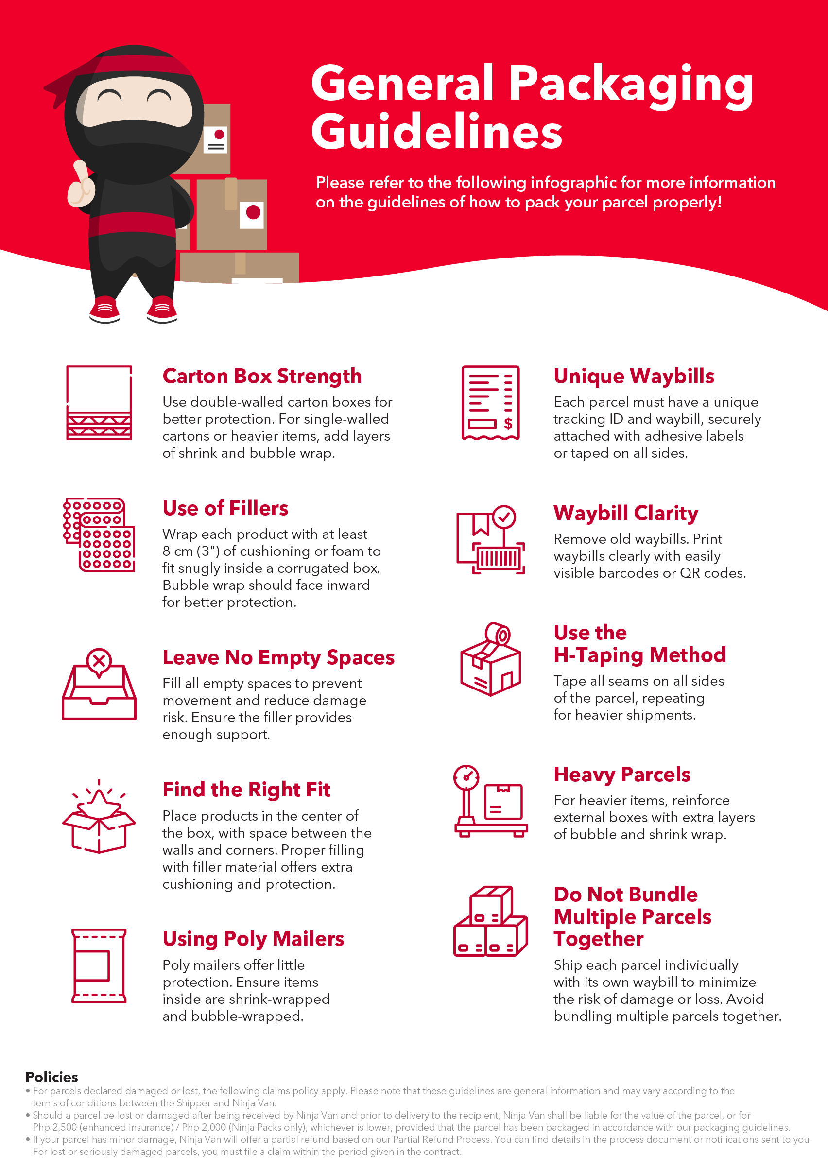 Please refer to the following infographic for more information on the guidelines of how to pack your parcel properly!