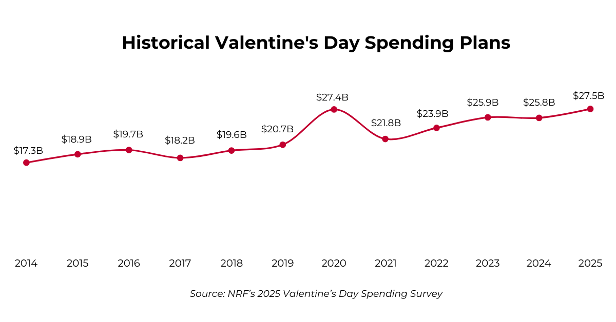 And it’s not just us, either. In the U.S., Valentine’s Day spending is expected to hit a record $27.5 billion this year.