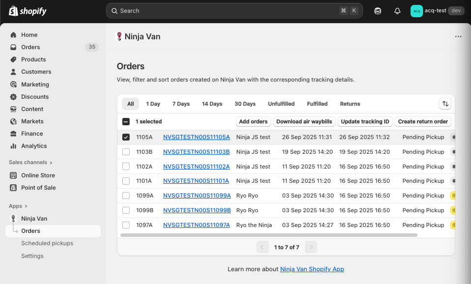 Print shipping labels/air waybills from the Ninja Van Shopify app