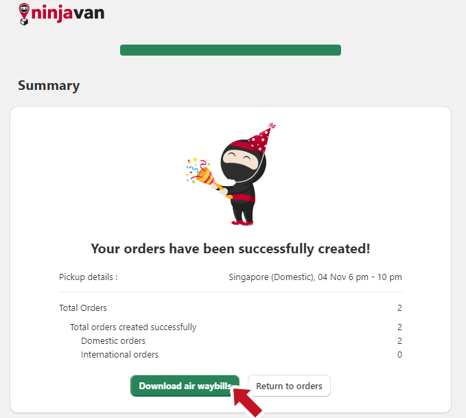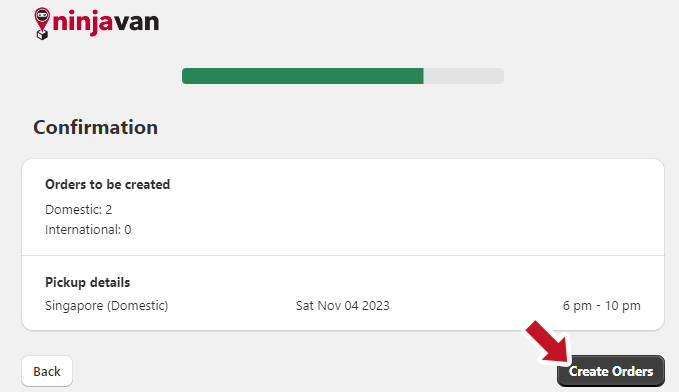 - Click Create orders on Ninja Van.
