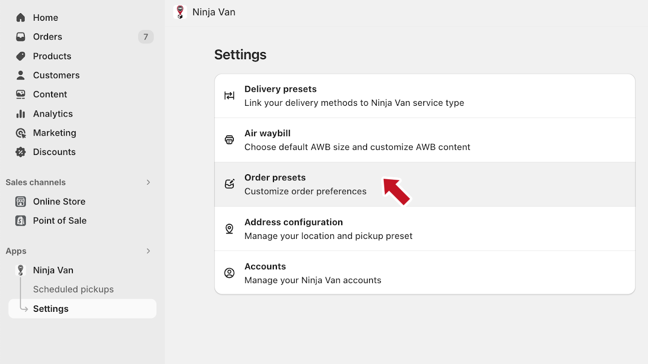 - Click Ninja Van app.
