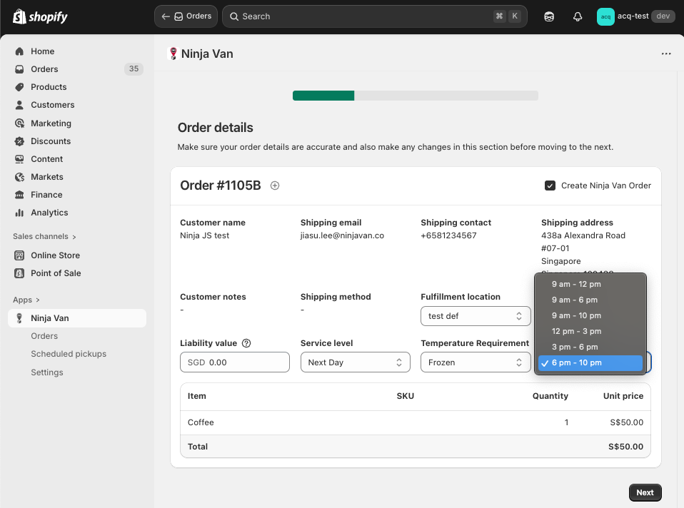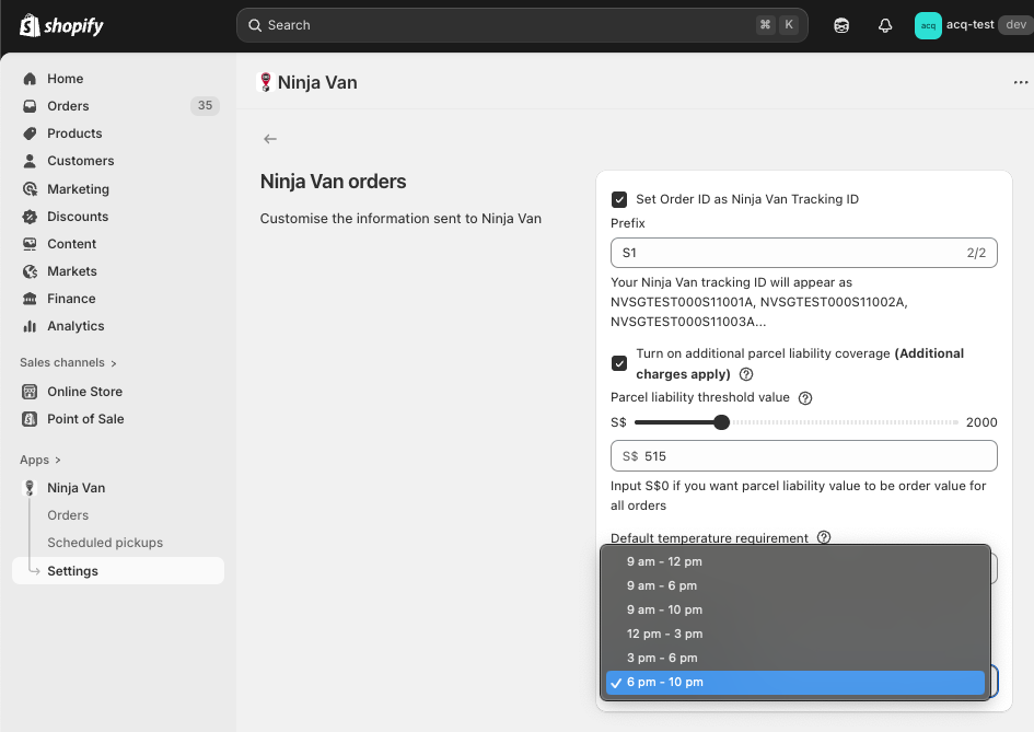 - You may choose to set a default delivery time slot. This means that your orders will default to this delivery time slot and you will be able to change this during order creation if there are orders that require different delivery time slots.