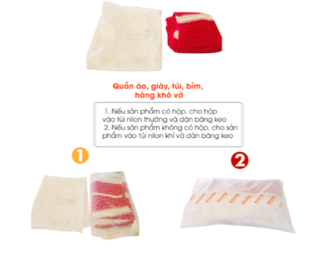 | Clothing, shoes, bags | A. For orders without hard carton boxes, simply wrap the package with plastic film and seal it with tape; B. For orders without sturdy carton boxes, additional bubble wrap should be used before wrapping it with plastic film and sealing it with tape; C. In the case of having manufacturer boxes, simply wrap them with regular plastic bags and use tape to securely package the items. D. If the product is without the box containers of the manufacturer, additional bubble wrap should be used before placing them in regular plastic bags and sealing them with tape. E. Clothing, shoes and bags should be folded before packaging, wrapped in 2-3 layers of nylon or shrink wrap, and fully secured with adhesive tape to mitigate risks in case of adverse weather conditions. F. Footwear, slippers and handbags must have an external carton box after being wrapped in 2-3 layers of nylon. In case it is necessary to preserve the original manufacturer box, it should be surrounded by foam padding on all sides, fully secured with tape, and placed in a sturdy carton box. | ![]() |