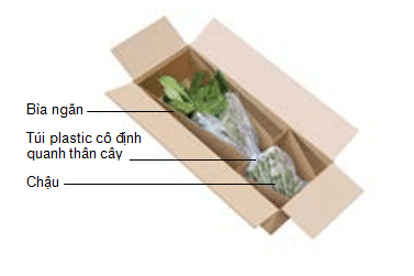 | Plants | A. When transporting plants, it is important to secure them to prevent movement inside the shipping box. B. If placing the plants inside a cardboard box, the stems and leaves may get damaged, so it is recommended to use cardboard dividers to secure the pots inside the box. C. The soil inside the box should also be packaged. Place the pot in a plastic bag and tie the bag around the base of the plant. D. If the plant has multiple stems, you can insert paper between the leaves and place it on top of the soil to keep the plant secure in the pot. | ![]() |