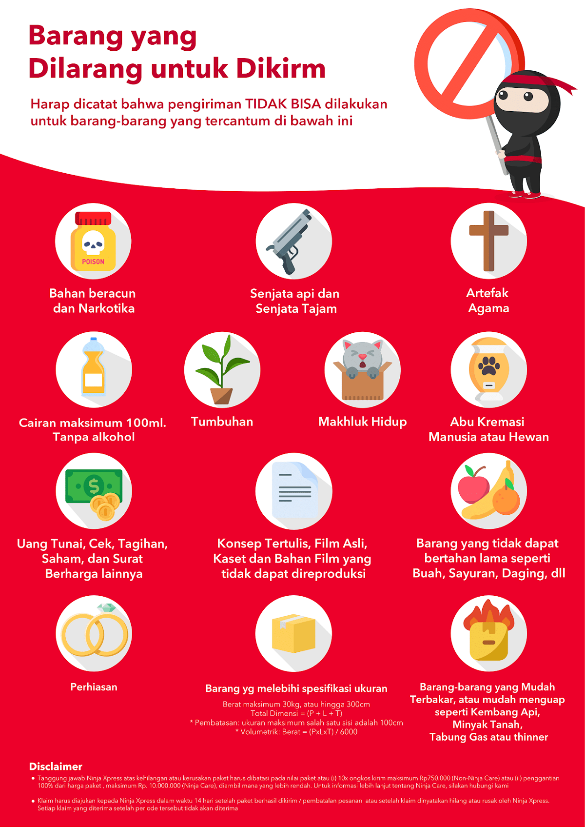 Berat maksimal paket adalah 30 kg. Sedangkan untuk dimensi tidak boleh melebihi 150 cm (Panjang x Lebar x Tinggi), dengan setiap sisi maksimal 80 cm.